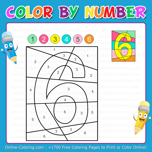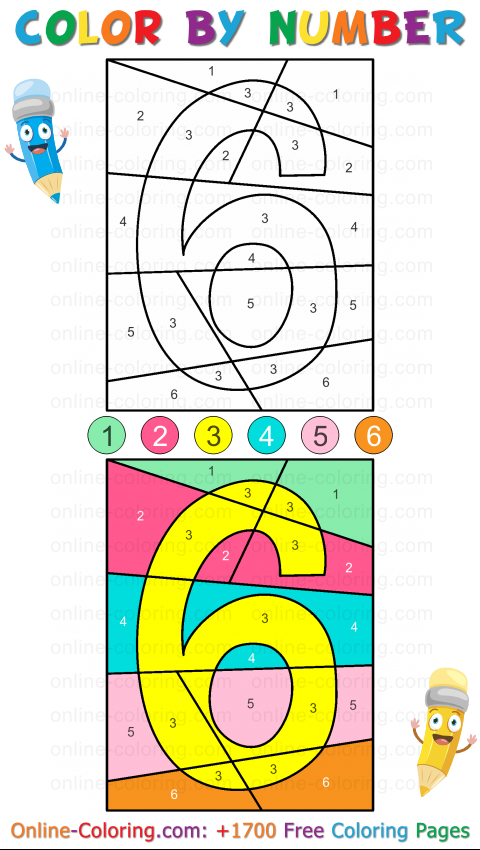 Kids can enjoy this Color By Number Coloring Page directly online for an interactive coloring experience. They can also print the page and color it using crayons, markers, or colored pencils. A simple and enjoyable way to learn the number 6 while having fun with a Color By Number coloring activity!