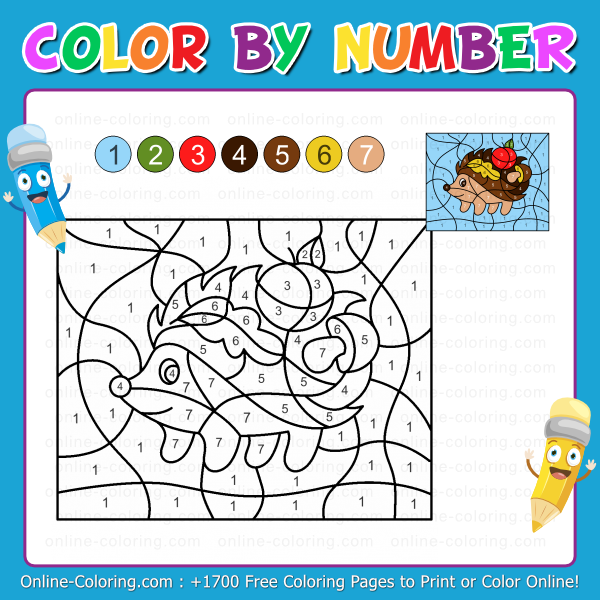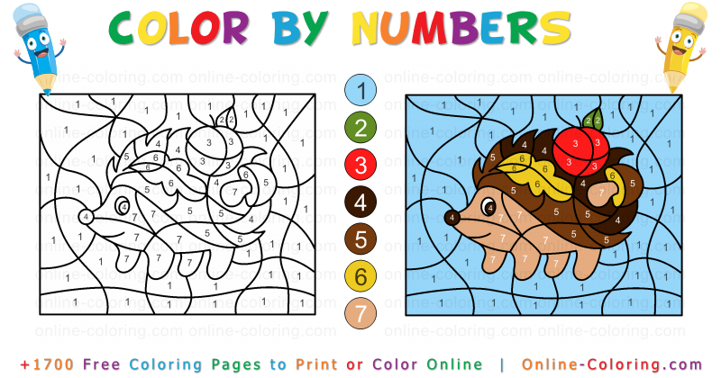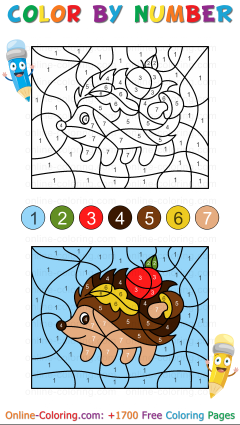 This Color By Number activity for kids is perfect for improving concentration, number recognition, and fine motor skills while having fun. Each numbered area corresponds to a specific color. As you fill them in, the background gradually appears, the hedgehog's warm brown tones come to life, and the apple becomes beautifully vibrant. The image unfolds like a colorful puzzle.