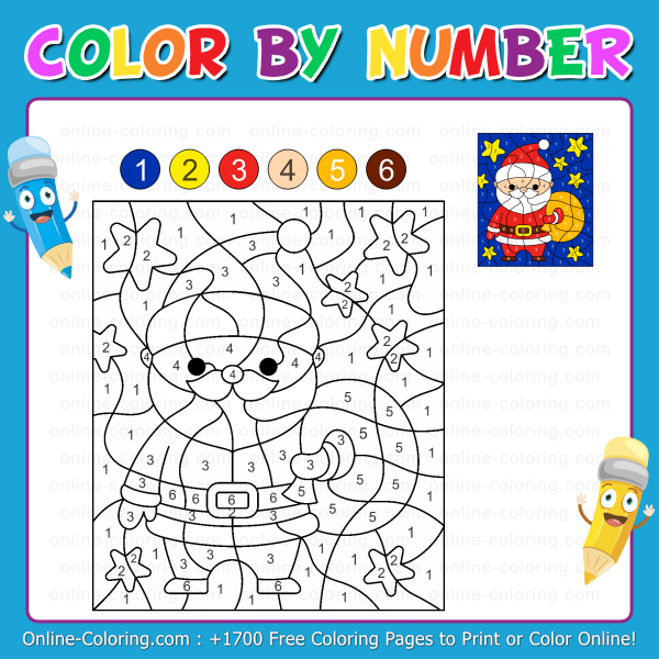 You can enjoy this color-by-number activity online for a calm and relaxing moment, or choose the printable coloring page to color at home or in class. It's a great way to practice concentration, color recognition, and fine motor skills while having fun. With this magical Color By Number Santa Page, just follow the numbers and bring your own Santa to life! Grab your colors... and let Christmas magic begin!