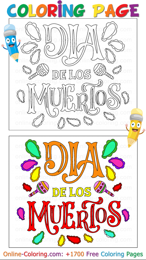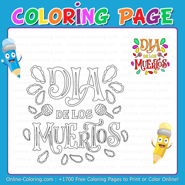 - Coloring Page #703 - "Dia De Los Muertos" badge with maracas