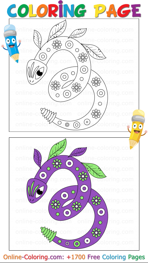 By coloring this page, you can discover how an animal often seen as frightening is here turned into a poetic and joyful figure — a snake that inspires imagination instead of fear.