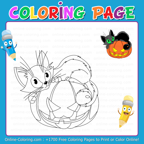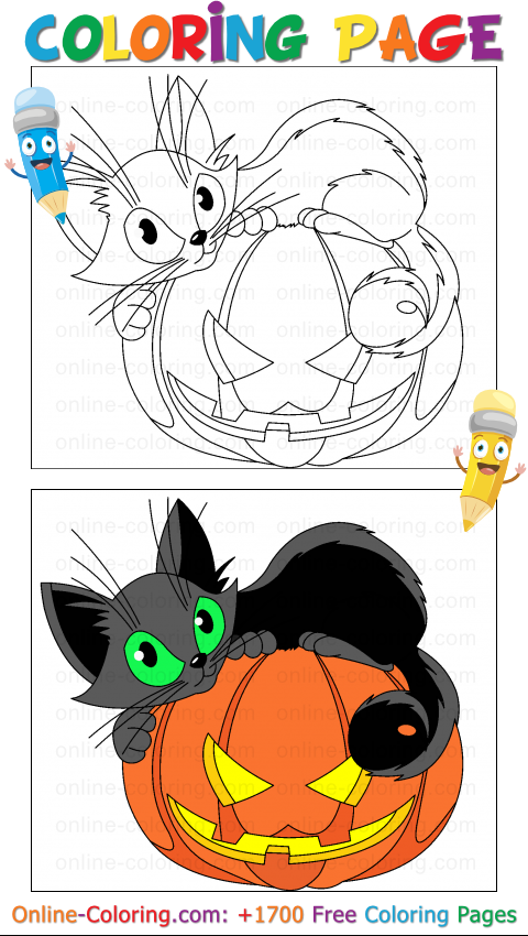 - Coloring Page #513 - Black Cat lying on the Halloween Pumpkin