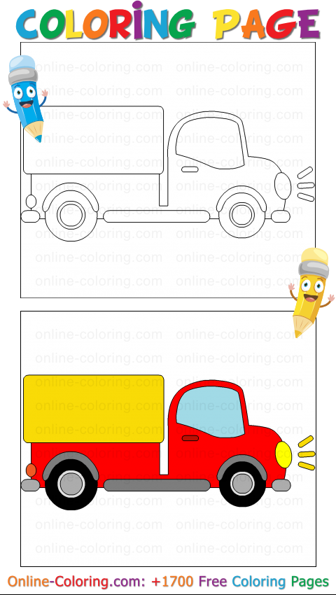 To bring this coloring page to life, you can color the cab in a bright cherry red, the trailer in a sunny yellow, and the windows in a light blue that looks like the sky. The strong, round wheels can stay dark gray, or you can make them more playful with purple, green, or even turquoise. And why not imagine a rainbow truck, with each part in a different color, to make it the happiest delivery truck ever?