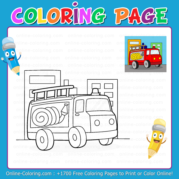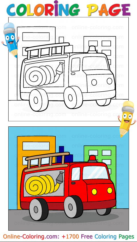 Attention young firefighters, here comes the big red fire truck, ready to rush at full speed through the city streets! With its ladder fixed on top and its large hose rolled up on the side, it's always prepared to put out flames and save lives.