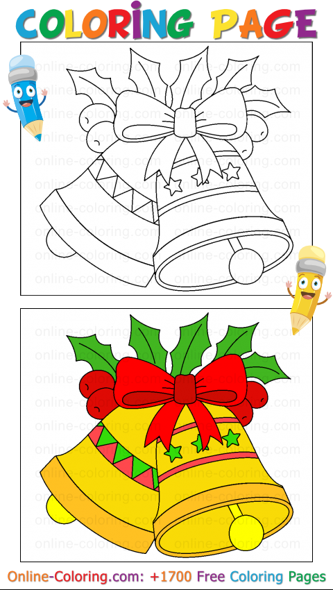 - Coloring Page #1482 - Christmas Bells With Ribbon