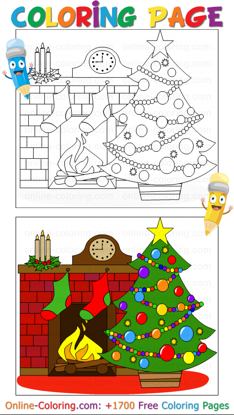 - Coloring Page #246 - Christmas Fireplace Decorations