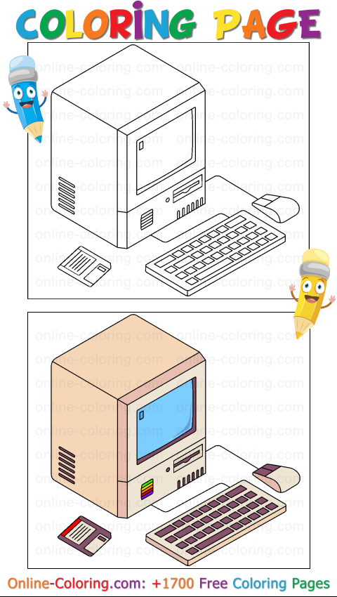 To bring this coloring page to life, you can choose its iconic retro tones: light beige or cream gray for the case, pale blue for the screen, black or brown for the keyboard keys, and of course the colorful bitten apple logo. But you can also reimagine it in bright, modern shades — hot pink, neon green, or futuristic purple — as if this classic computer had been reinvented today. Grab your crayons, your markers, or your mouse, and bring this 1980s icon back to life — a pioneer of the great digital adventure!