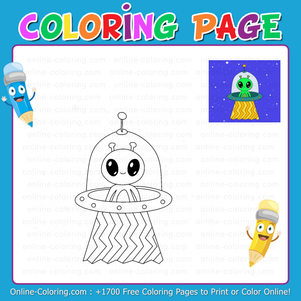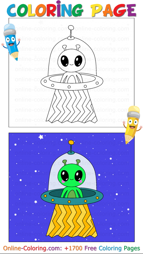 - Coloring Page #1571 - Cute Alien Flying With UFO Spaceship