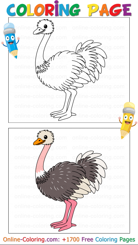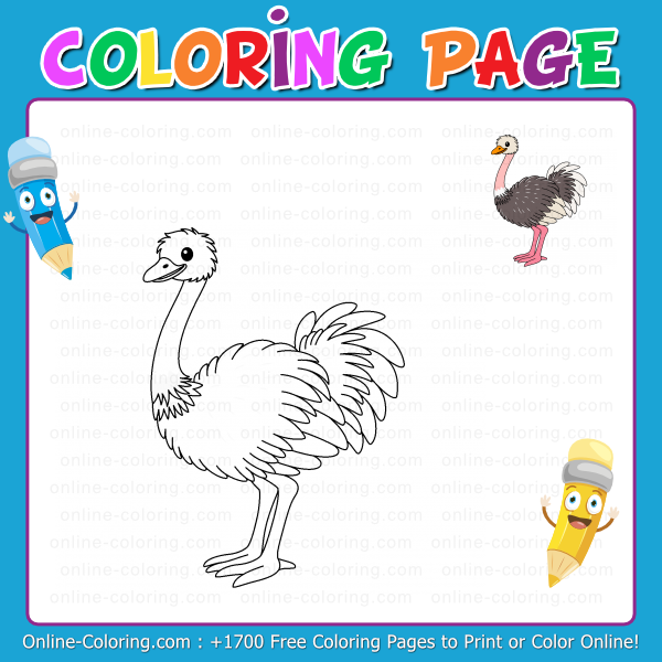 Take your time as you color the illustration, have fun, and remember: even without wings to fly, this ostrich has nothing to envy in the bird world!