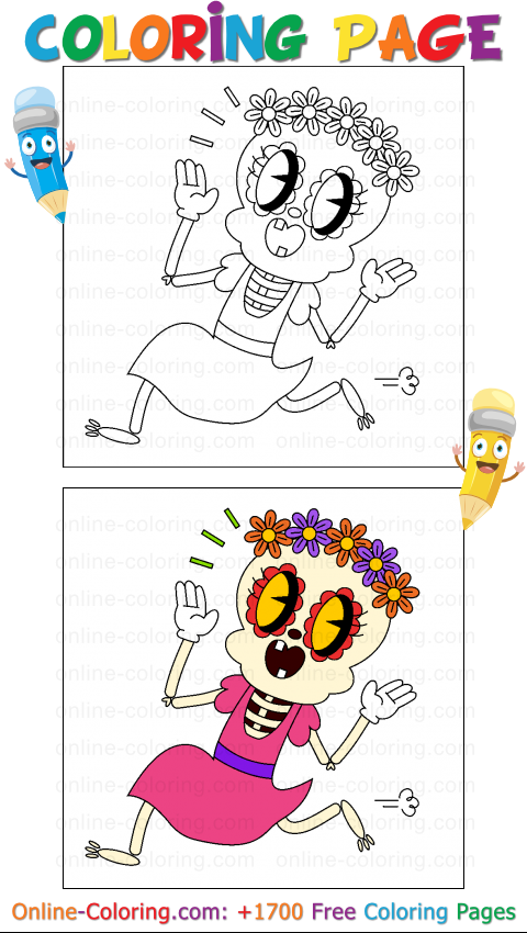 - Coloring Page #1737 - Dancing and Dashing Catrina