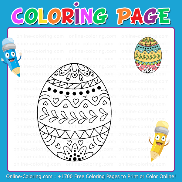 - Coloring Page #1789 - Easter Egg with Cute Doodle Hearts