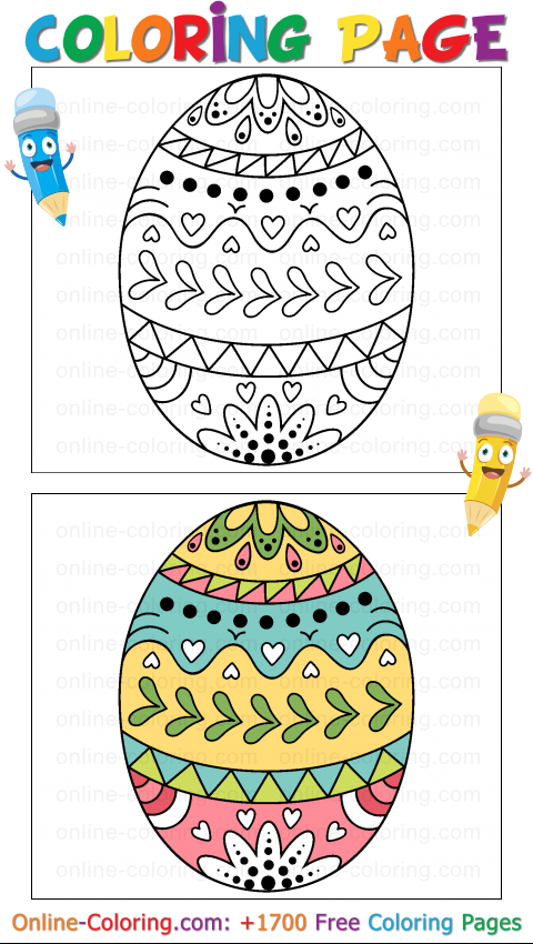This Easter Coloring Page looks like a little treasure, carefully decorated as if someone had used a magic marker to fill a large egg with charming hand-drawn details. Across the shell, you'll discover playful doodle patterns arranged in lovely bands: tiny hearts, petal shapes, soft waves, cheerful dots, festive triangles, and rounded designs that give the whole egg a sweet and whimsical springtime feel.