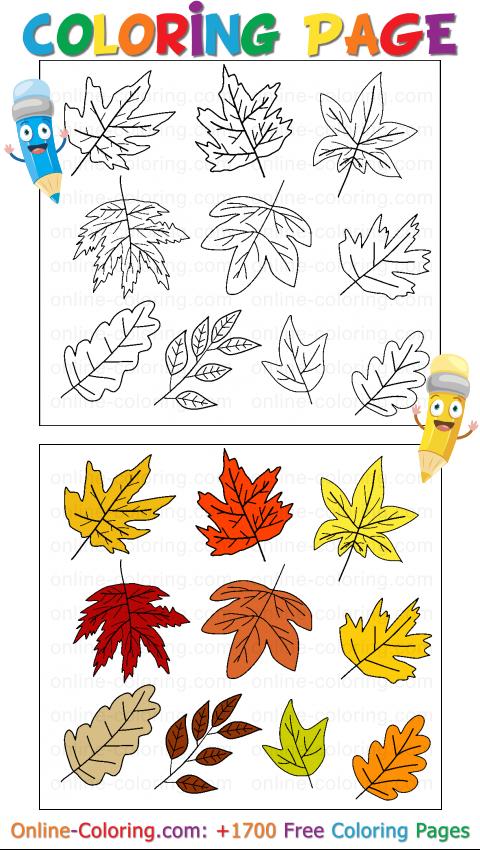 In this coloring page, you can bring the season to life by filling the leaves with sunflower yellow, pumpkin orange, garnet red, or hazelnut brown. Or you can let your imagination run wild and create a purple, turquoise, or even golden leaf! Now it's your turn: color these autumn leaves and turn this page into a beautiful forest walk full of colors!
