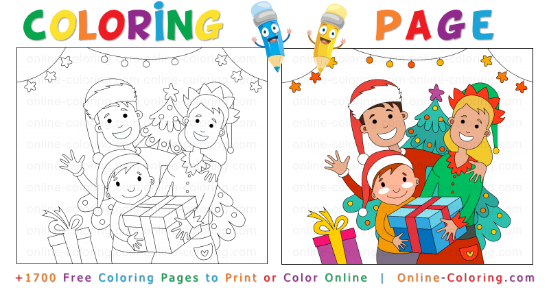 - Coloring Page #1760 - Family Celebrating Christmas Together