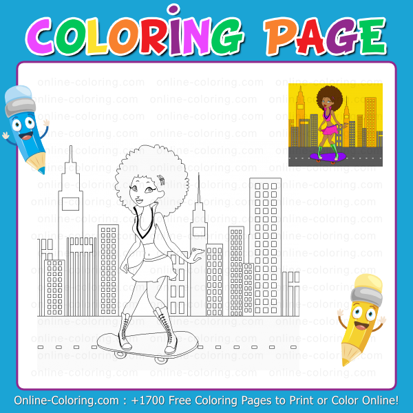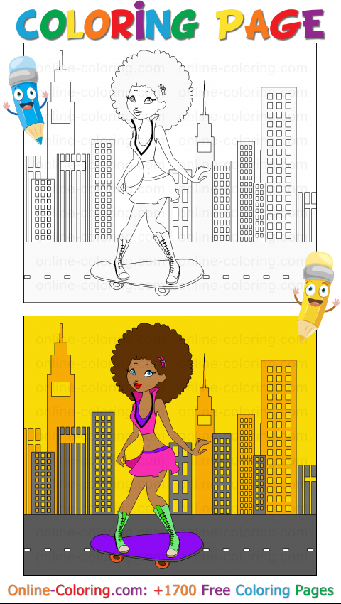 - Coloring Page #177 - Funky girl skating on road