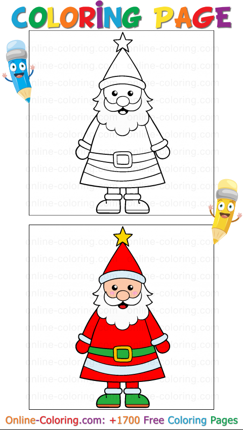 Here is a delightful Coloring Page where Santa Claus turns into a cheerful little funny Christmas tree! With his tall triangular coat, his snowy beard, and the bright star sitting on top of his hat, he looks just like a festive tree ready to light up Christmas Eve. This playful illustration invites children to add colors to a very unusual Santa, almost disguised as a holiday tree, bringing even more magic to the winter season.