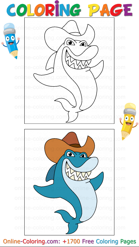 - Coloring Page #1117 - Funny Shark with a Cowboy Hat