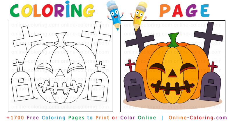 - Coloring Page #1456 - Halloween Pumpkin with Crosses and Gravestones