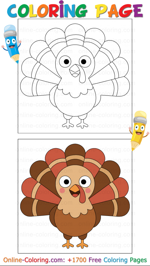 This coloring page invites you to celebrate the warm colors of fall. Have fun filling in his feathers with tones of bark brown, hot chocolate, rust, and honey gold, and make him the proud star of your Thanksgiving celebration!