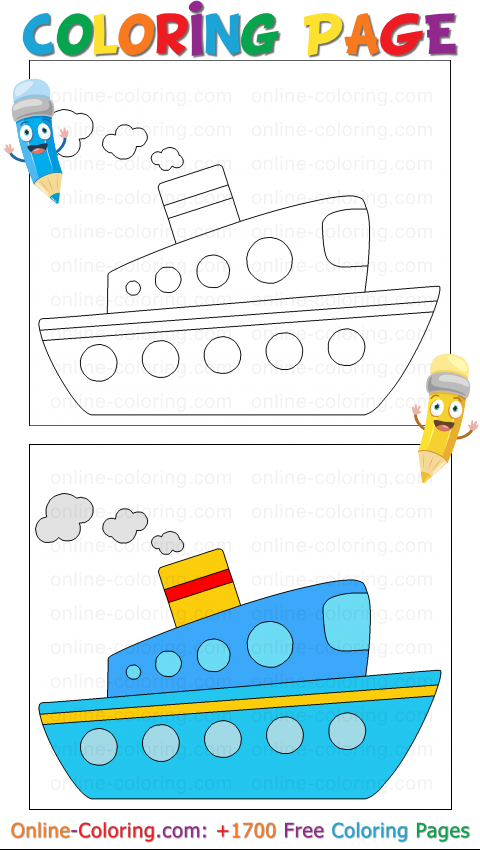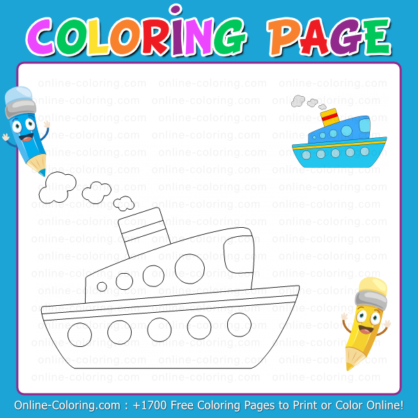 Have fun coloring this boat: you can give it a blue, red, or even rainbow-colored hull, shiny portholes like pearls, and a smokestack glowing in yellow or orange. Now, sailor, raise the anchor and set off on an adventure: this boat is ready for you to invent a thousand colorful journeys!