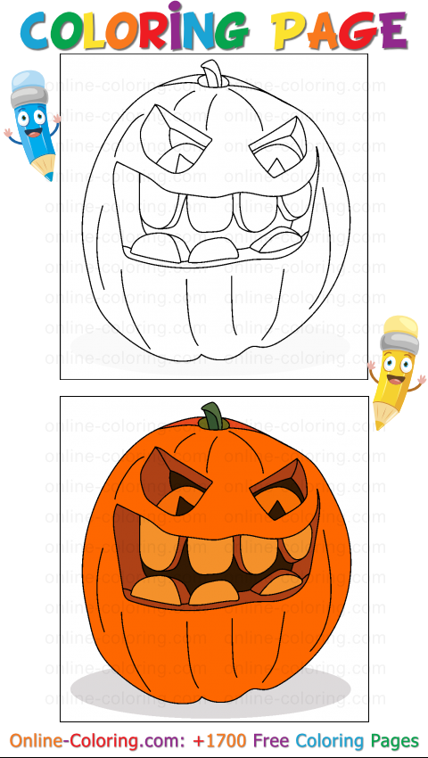 To color this grimacing pumpkin, choose a deep, almost burnt orange for the skin. The stem could be olive green or earthy brown, and the fiery orange eyes outlined with hints of red to make them glow. The inside of the mouth could be pitch black or very dark brown so the golden-yellow teeth stand out like a glowing warning. This coloring page will pull you right into a more mysterious, shiver-filled Halloween... where even a smile can hide something strange.
