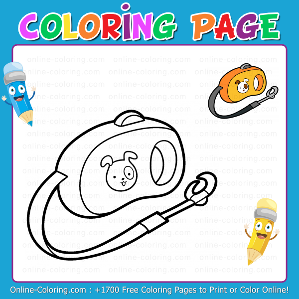 This fun and original Coloring Page takes you on a walk... without even leaving your home! In front of you is a retractable dog leash, the kind people use to let their dog explore while staying safe and in control. But today, this leash is ready for an adventure with you! Imagine it belongs to a playful little dog who loves chasing leaves, sniffing every corner, and exploring the park. As soon as the walk begins, the leash rolls out, pulls back in, and stretches again as the curious pup runs back and forth. Sometimes the dog suddenly stops to watch a butterfly, and sometimes it pulls a little too hard... but everything stays under control!