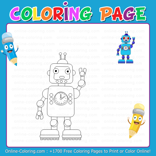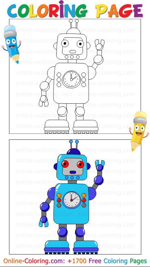 Now it's your turn to give me my colors. You can dress me in metallic blue, shiny silver, or bright red, and make my buttons glow in green, yellow, or orange. Or, if you'd like, you can create a kaleidoscopic robot — I'll be even more unique and extraordinary. So grab your crayons, your markers, or your mouse, and help me become the most colorful and cheerful robot in the whole galaxy!