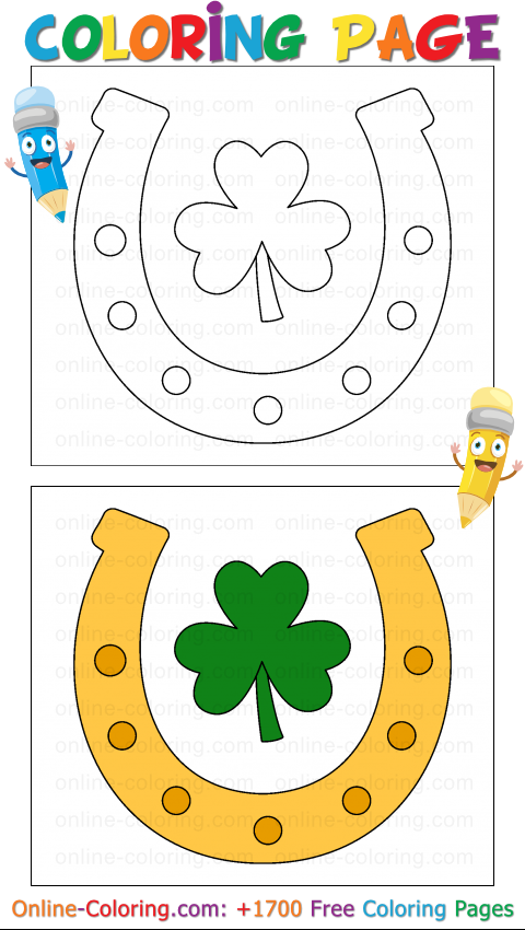 In this online coloring page, you can choose any colors you like. The clover can be bright clover green, emerald green, or even mint green. The horseshoe could shine in golden yellow like a hidden treasure. You can even invent your own magical lucky charm with creative colors!