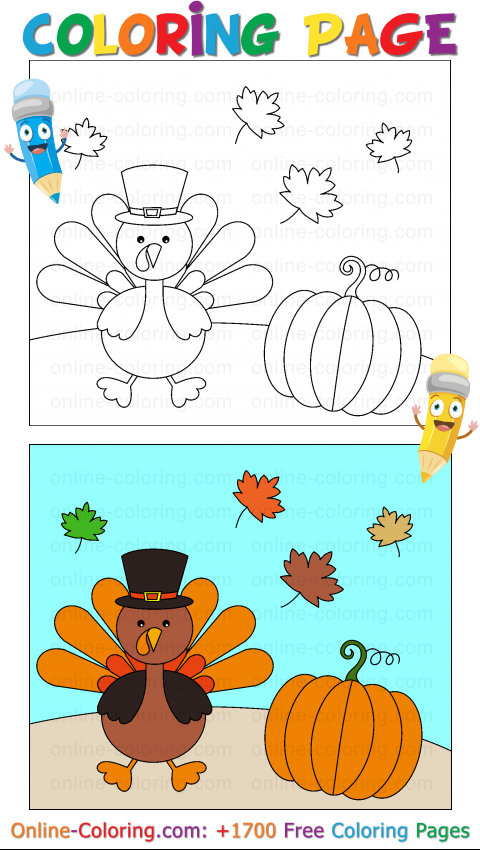 - Coloring Page #1644 - Thanksgiving Turkey With a Pumpkin