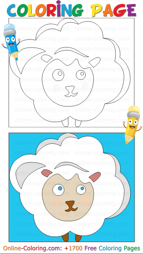 To color this peaceful sheep, you can choose a pure white or creamy white for his wool, adding soft shadows in pearl gray or cloud gray to give it some depth. His face could be sand beige, light hazelnut, or soft caramel, while his ears might look sweet in pale pink or dusty rose. His little hooves can be chestnut brown or cocoa brown to stand out against his light coat. You might give his cheeks a touch of candy pink or soft peach for a warm, cheerful glow. And his eyes could shine in sky blue or misty gray to keep that tender, dreamy look. Around him, you could imagine a lavender blue or bright azure sky to make his fluffy whiteness pop even more.