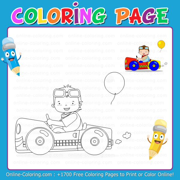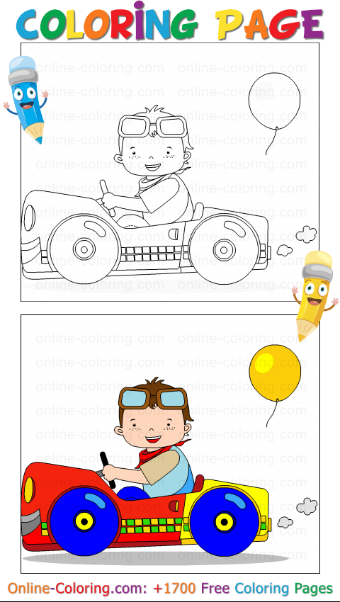 - Coloring Page #340 - Young boy driving pedal car